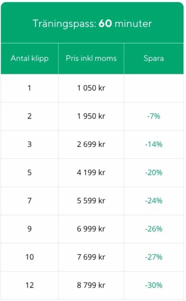 Om du väljer att köpa flera träningstillfällen direkt kan du dessutom boka pass hos olika tränare – ett bra sätt att hitta den tränare och träningsstil som passar dig bäst.